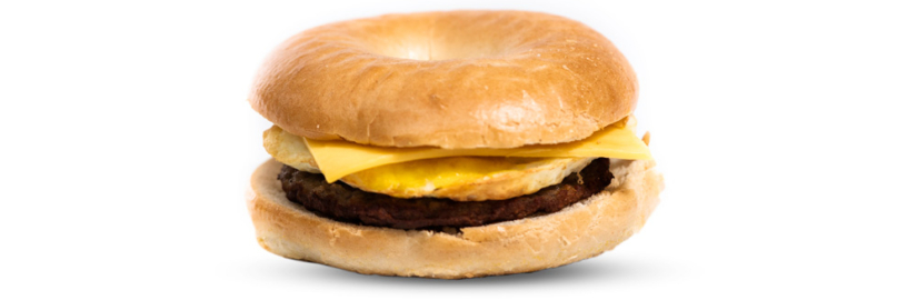 Related Items Sausage & American Cheese Biscuit Sausage, Egg, & American Cheese Bagel Breakfast sausage, soft and fluffy egg, and warm American cheese, all on a freshly sliced bagel. 590 Calories 34 Fat (g) 46 Carbs (g) 24 Protein (g) Ingredients > x Bagel: Enriched Wheat Flour (Wheat Flour, Malted Barley Flour, Niacin, Reduced Iron, Thiamin Mononitrate, Riboflavin, Folic Acid), Water, Dextrose, Salt, Yeast, Wheat Gluten, Fermented Rye Flour, Cornmeal, Malted Barley Flour, Calcium Propionate (Preservative), Modified Cornstarch, Dough Conditioners (Enzymes, L-Cysteine)., Sausage Patty: TBHQ, BHT with Citric Acid Added to Help Protect Flavor Ingredients: Pork, Water, Salt, Spices, Dextrose, Sugar, Autolyzed Yeast, Lime Flavor (Corn Syrup Solids, Lime Juice Solids, Natural Flavor), Flavoring,TBHQ, BHT, Citric Acid, Lactic Acid., Fried Egg Patty: Egg Whites, Egg Yolk, Soybean Oil, Water. Contains 2% or less of the following: Modified Corn Starch, Black Pepper, Salt, Natural Butter Flavor, Cellulose Gum, Xantham Gum, Citric Acid, EDTA., Yellow American Cheese: Cultured Milk and Skim Milk, Cream, Sodium Citrate, Salt, Color Added , Sodium Phosphate, Sorbic Acid , Enzymes, Soy Lecithin Full Nutrition Information > x 590 Calories 300 Calories from Fat 34 Total Fat (g) 13 Saturated Fat (g) 165 Cholesterol (mg) 1250 Sodium (mg) 46 Total Carbohydrates (g) 2 Dietary Fiber (g) 3 Sugars (g) 24 Protein (g) Related Items Sausage & American Cheese Biscuit