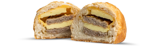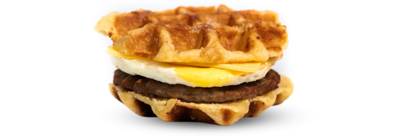 Breakfast sausage, soft and fluffy egg, and warm American cheese, on two pieces of perfectly sweet Belgian waffle. A new savory and sweet Duchess favorite!
