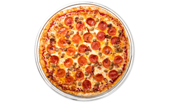Our signature Duchess crust topped with layers of our mozzarella and provolone cheese blend, sliced pepperoni, green peppers, mushrooms, onions, and sausage.
