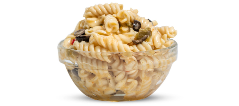 Corkscrew pasta, olives, peppers, and onions, all covered in a light, tangy, dressing. A perfect lunch for 1, or side for a gathering.