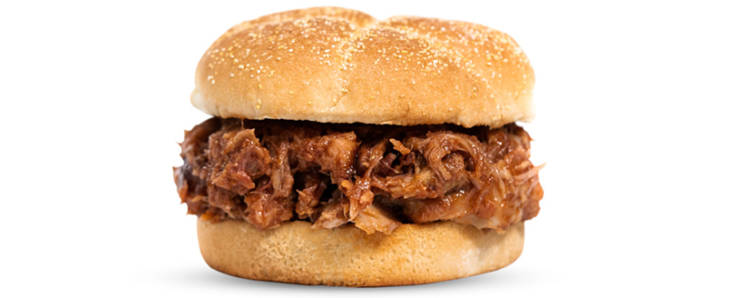 Related Items Shredded Chicken Sandwich Cheeseburger BBQ Pulled Pork Sandwich Tender and juicy pulled pork tossed in a sweet and tangy BBQ sauce, on a soft kaiser bun. A lunchtime favorite everyone should come in and try! 450 Calories 20 Fat (g) 34 Carbs (g) 31 Protein (g) Ingredients > x BBQ Pulled Pork: Cooked Pork, Cider Vinegar, Sugar, Salt, Spices., Kaiser Buns: Enriched Wheat Flour (Wheat Flour, Malted Barley Flour, Niacin, Iron, Thiamin Mononitrate, Riboflavin, Folic Acid), Water, High Fructose Corn Syrup, Yeast, Contains 2% or less of the following: Soybean Oil, Wheat Gluten, Salt, Sesame Seeds, Corn Flour, Turmeric, Mono & Diglycerides, Paprika, Natural and Artificial Flavors, Corn Starch, Calcium Sulfate, Ammonium Chloride, Azodicarbonamide, Sodium Stearoyl Lactylate, Ammonium Sulfate, Calcium Propionate (Preservative), Calcium Peroxide., Sweet Baby Ray’s BBQ Sauce: High Fructose Corn Syrup, Distilled Vinegar, Tomato Paste, Modified Food Starch, Contains less than 2% of: Salt, Pineapple Juice Concentrate, Natural Smoke Flavor, Spices, Caramel Color, Sodium Benzoate as a Preservative, Molasses, Corn Syrup, Garlic,* Sugar, Tamarind, Natural Flavor. *Dried Full Nutrition Information > x 450 Calories 180 Calories from Fat 20 Total Fat (g) 7 Saturated Fat (g) 100 Cholesterol (mg) 900 Sodium (mg) 34 Total Carbohydrates (g) 1 Dietary Fiber (g) 11 Sugars (g) 31 Protein (g) Related Items Shredded Chicken Sandwich Cheeseburger