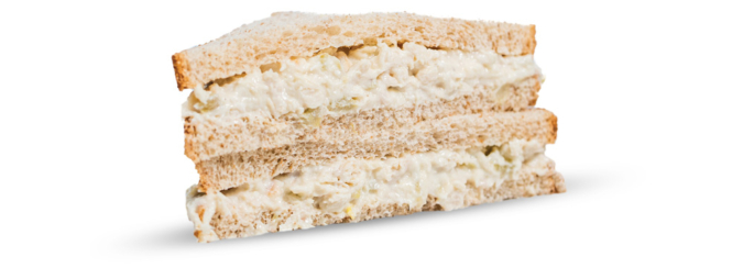 Related Items Egg Salad Chicken Salad Sandwich Egg Salad Sandwich Our fresh and creamy egg salad on top of soft, wheat bread. A lunchtime favorite! 300 Calories 12 Fat (g) 40 Carbs (g) 11 Protein (g) Ingredients > x Egg Salad: Eggs (water, citric acid and sodium benzoate (preservatives), Salad dressing: water, soybean oil, high fructose corn syrup, vinegar, modified food starch, eggs, salt, natural flavor, mustard flour, potassium sorbate as a preservative, paprika, spice, dried garlic.), Sweet Relish: (cucumbers, high fructose corn syrup, water, vinegar, salt, spices, alum, xanthium gum, calcium chloride, potassium sorbate (preservative), polysorbate 80, dehydrated red bell peppers, natural flavors, turmeric, color., Wheat Bread: Wheat Flour, Water, Whole Wheat Flour, High Fructose Corn Syrup, Yeast, Contains 2% or less of the following: Soybean Oil, Salt, Wheat Gluten, Caramel Color, Monoglycerides, Sodium Stearoyl Lactylate, Calcium Sulfate, Ammonium Sulfate, Calcium Propionate (Preservative), Ascorbic Acid, Calcium Peroxide, Wheat Starch, Azodicarbonamide, Soy Lecithin. Full Nutrition Information > x 300 Calories 10 Calories from Fat 12 Total Fat (g) 4.5 Saturated Fat (g) 200 Cholesterol (mg) 740 Sodium (mg) 40 Total Carbohydrates (g) 8 Dietary Fiber (g) 7 Sugars (g) 11 Protein (g) Related Items Egg Salad Chicken Salad Sandwich