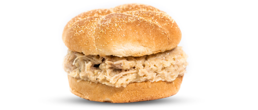 Related Items Crispy Chicken Sandwich Cheeseburger Shredded Chicken Sandwich Creamy, shredded, white meat chicken, on top of a warm, fresh, kaiser bun. A quick and easy lunch! 280 Calories 7 Fat (g) 37 Carbs (g) 17 Protein (g) Ingredients > x Shredded Chicken: Roots Shredded Chicken: CHICKEN, CHICKEN BROTH, WATER, SOY GRITS, SALT, DEXTROSE, SOYBEAN OIL, DEHYDRATED ONION, MODIFIED CORN STARCH, HYDROLYZED SOY PROTEIN, HYDROLYZED CORN GLUTEN, SPICE EXTRACTIVES, SPICES, DEHYDRATED PARSLEY, SUGAR, CORN STARCH, ONION POWDER, YEAST, GARLIC POWDER, TURMERIC, PAPRIKA. Cream of Chicken Soup: CHICKEN STOCK, MODIFIED FOOD STARCH, CHICKEN FAT, WHEAT FLOUR, CHICKEN MEAT, CREAM (MILK), CONTAINS LESS THAN 2% OF: SALT, VEGETABLE OIL, WHEY**, SOY PROTEIN CONCENTRATE, MONOSODIUM GLUTAMATE, YEAST EXTRACT, MECHANICALLY SEPARATED CHICKEN**, FLAVORING, VEGETABLE OIL, BETA CAROTENE FOR COLOR, SODIUM PHOSPHATE, SOY PROTEIN ISOLATE, CHICKEN FLAVOR, CHICKEN** CELERY EXTRACT, ONION EXTRACT, BUTTER (CREAM, ANNATTO). **DEHYDRATED. Bread Crumbs: BLEACHED ENRICHED WHEAT FLOUR (WHEAT FLOUR, MALTED BARLEY FLOUR, NIACIN (A-B VITAMIN), THIAMIN MONONITRATE (VITAMIN B-1), FERROUS SULFATE (IRON), RIBOFLAVIN (VITAMIN B-2), FOLIC ACID), WATER, YEAST, CONTAINS 2% OR LESS OF THE FOLLOWING: SALT, SUGAR, DEXTROSE, SOYBEAN OIL, CALCIUM PROPIONATE (A PRESERVATIVE), MONOCALCIUM PHOSPHATE, MONO AND DIGLYCERIDES, CALCIUM SULPHATE, ASCORBIC ACID, POTASSIUM BROMATE, L-CYSTENE HYDROCHLORIDE, AMYLASE., Kaiser Buns: Enriched Wheat Flour (Wheat Flour, Malted Barley Flour, Niacin, Iron, Thiamin Mononitrate, Riboflavin, Folic Acid), Water, High Fructose Corn Syrup, Yeast, Contains 2% or less of the following: Soybean Oil, Wheat Gluten, Salt, Sesame Seeds, Corn Flour, Turmeric, Mono & Diglycerides, Paprika, Natural and Artificial Flavors, Corn Starch, Calcium Sulfate, Ammonium Chloride, Azodicarbonamide, Sodium Stearoyl Lactylate, Ammonium Sulfate, Calcium Propionate (Preservative), Calcium Peroxide. Full Nutrition Information > x 280 Calories 60 Calories from Fat 7 Total Fat (g) 1.5 Saturated Fat (g) 50 Cholesterol (mg) 760 Sodium (mg) 37 Total Carbohydrates (g) 2 Dietary Fiber (g) 8 Sugars (g) 17 Protein (g) Related Items Crispy Chicken Sandwich Cheeseburger