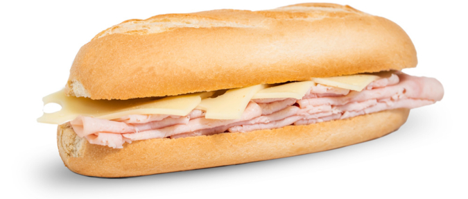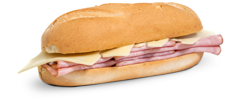 Related Items Spicy Ham Sub Turkey & Swiss Sub Ham & Swiss Sub Layers of freshly sliced ham and swiss cheese on a soft, sub bun. 520 Calories 18 Fat (g) 54 Carbs (g) 36 Protein (g) Ingredients > x 8″ White Sub Roll: ENRICHED WHEAT FLOUR (WHEAT FLOUR, MALTED BARLEY FLOUR, NIACIN, REDUCED IRON, THIAMIN MONONITRATE, RIBOFLAVIN, FOLIC ACID), WATER, SUGAR, YEAST, WHEAT GLUTEN, SALT, MALTED BARLEY EXTRACT, CALCIUM PROPIONATE (PRESERVATIVE), DOUGH CONDITIONERS (DIACETYL TARTARIC ACID ESTERS OF MONO AND DIGLYCERIDES, SODIUM STEAROYL LACTYLATE, ASCORBIC ACID, ENZYMES, L-CYSTEINE, AZODICARBONAMIDE), MALTED BARLEY FLOUR., Ham: Cured with water, Salt, Sugar, Dextrose, Sodium Phosphates, Sodium Erythorbate, Sodium Nitrite., Swiss Cheese: PASTEURIZED GRADE A MILK, CHEESE CULTURE, SALT, ENZYMES. Full Nutrition Information > x 520 Calories 160 Calories from Fat 18 Total Fat (g) 12 Saturated Fat (g) 85 Cholesterol (mg) 1590 Sodium (mg) 54 Total Carbohydrates (g) 2 Dietary Fiber (g) 4 Sugars (g) 36 Protein (g) Related Items Spicy Ham Sub Turkey & Swiss Sub