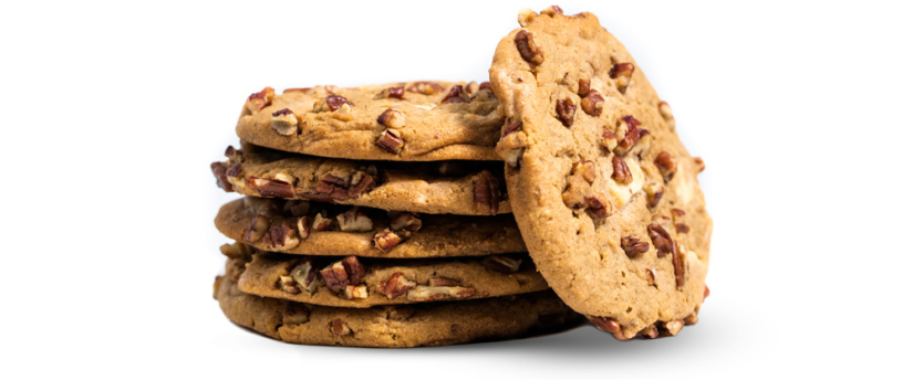 Related Items Reese’s Decadent Cookie Hershey’s Triple Chocolate Decadent Cookie White Chocolate Pumpkin Pecan Cookie Chunks of rich white chocolate, gooey pumpkin, and crunchy bits of pecans, all swirled together into the perfect, decadent, cookie. 570 Calories 34 Fat (g) 64 Carbs (g) 6 Protein (g) Ingredients > x Wheat flour (wheat, barley, niacin, reduced iron, thiamine mononitrate, riboflavin, folic acid), white chocolate chunks (sugar, cocoa butter, milk powder, soy lecithin, vanilla), sugar, butter, margarine (vegetable oil blend [palm fruit, soybean and olive oils], water, salt, non-fat dry milk, soy lecithin, monoglycerides, natural flavor, vitamin A palmitate, beta carotene color), brown sugar, pecans, pumpkin, eggs, cinnamon, ginger, salt, nutmeg, allspice, baking soda, baking powder (sodium acid pyrophosphate, corn starch, baking soda, mono calcium phosphate). Contains: EGG, MILK, SOY, TREE NUTS, WHEAT. Full Nutrition Information > x 570 Calories 300 Calories from Fat 34 Total Fat (g) 13 Saturated Fat (g) 55 Cholesterol (mg) 220 Sodium (mg) 64 Total Carbohydrates (g) 2 Dietary Fiber (g) 40 Sugars (g) 6 Protein (g) Related Items Reese’s Decadent Cookie Hershey’s Triple Chocolate Decadent Cookie